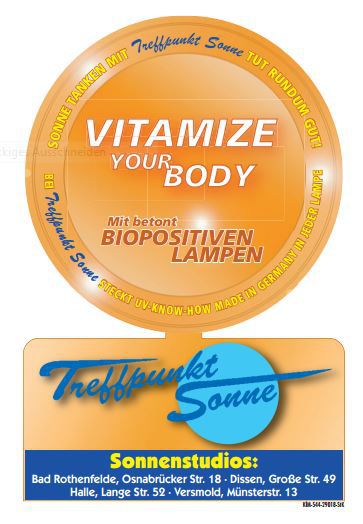 Auch der Vitamin-D Haushalt wird durch einen regelmäßigen Besuch in ihrem Sonnenstudio Treffpunkt Sonne auf einem gesunden Level gehalten,